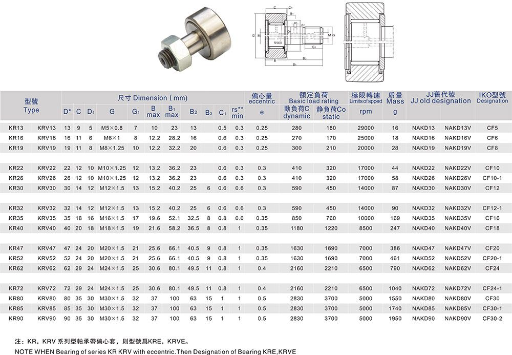 產品名稱:KR螺栓型滾輪滾針軸承
